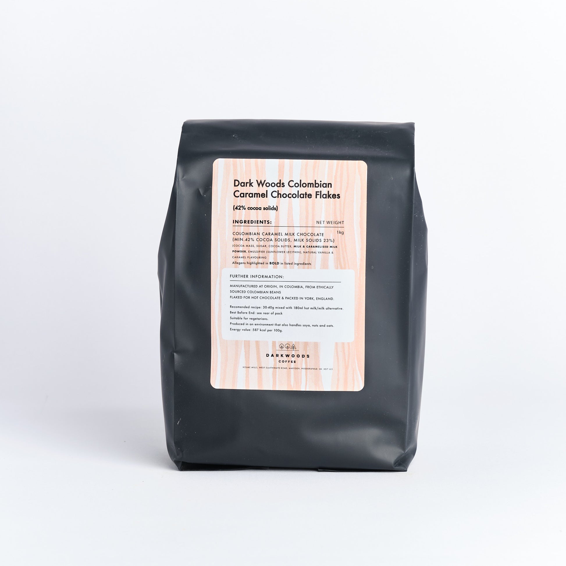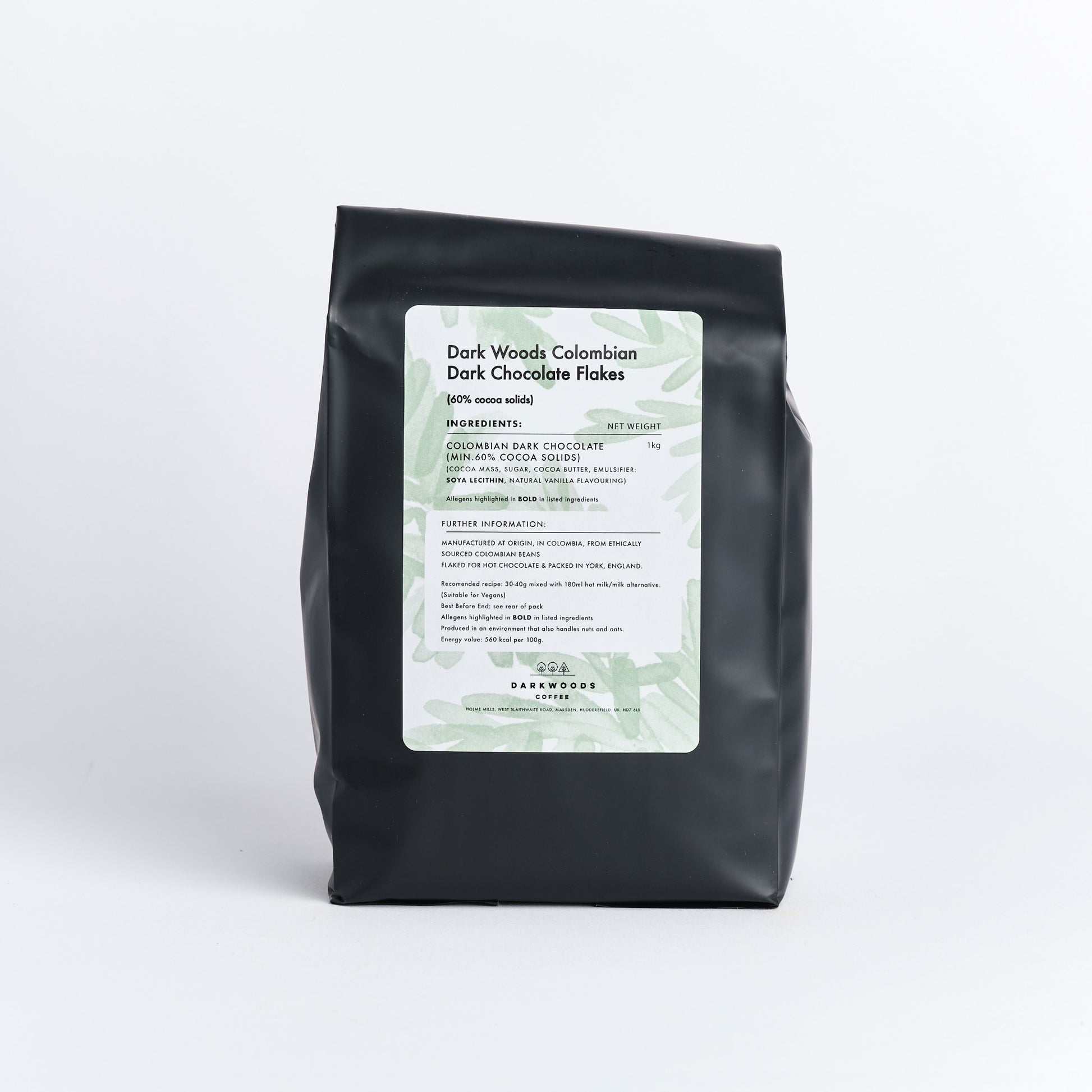 Made from 100% Colombian beans, ethically directly sourced and traded. Made by an Colombian Chocolate manufacturer – supporting the economy at source rather than importing just the raw materials. The chocolate is then imported, flaked and packed by Choc Affair in York.