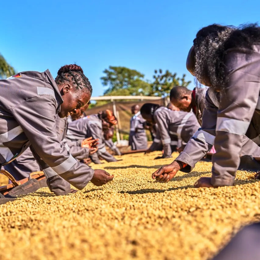 This wonderful, classic Kenya coffee is processed by the traditional Kenyan method. Ripe cherries are selected, pulped and the coffee fermented for 12-48 hours in water tanks, washed cleaned and then sun-dried on raised African beds. Fruity and tangy.